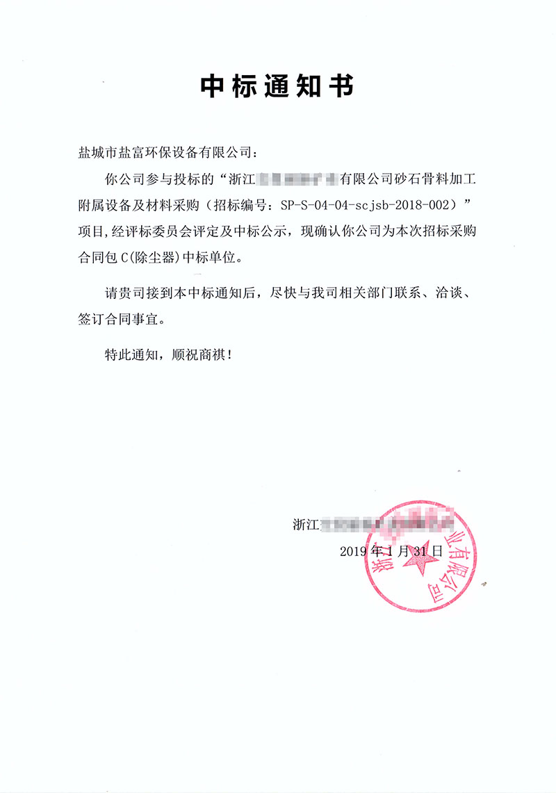 新年歲首,萬象更新。鹽城市鹽富環(huán)保設(shè)備有限公司再創(chuàng)佳績,新年開“新”,成功中標(biāo)浙江某大型企業(yè)砂石骨料除塵器新項目,實現(xiàn)新年“開門紅”!